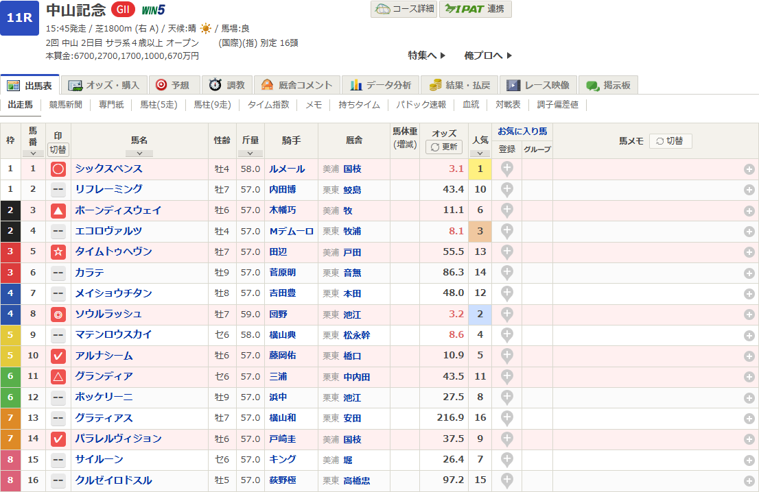 3/2に中山競馬場で行われます中山記念の予想を発表していこうと思います!